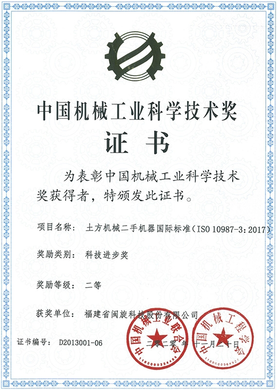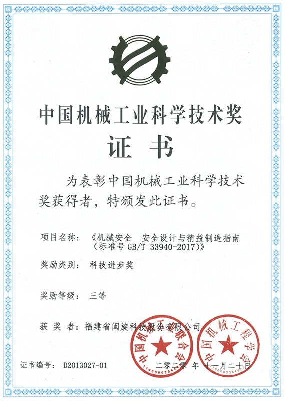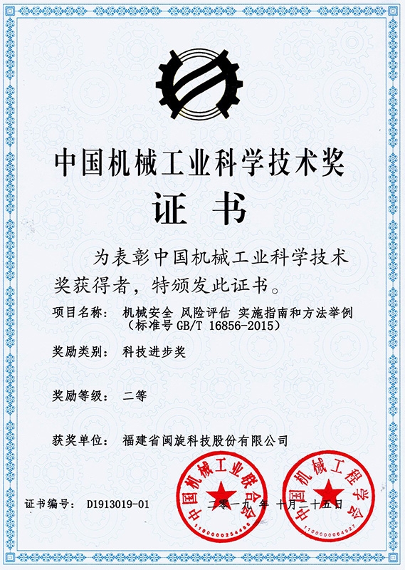 中国机械工业科学技术奖证书